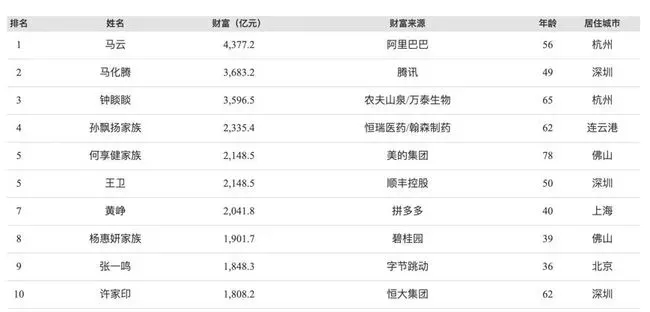 在本次的榜单中,首富仍然是阿里巴巴的创始人马云,以4377.2亿元的身家第三次位居榜首。