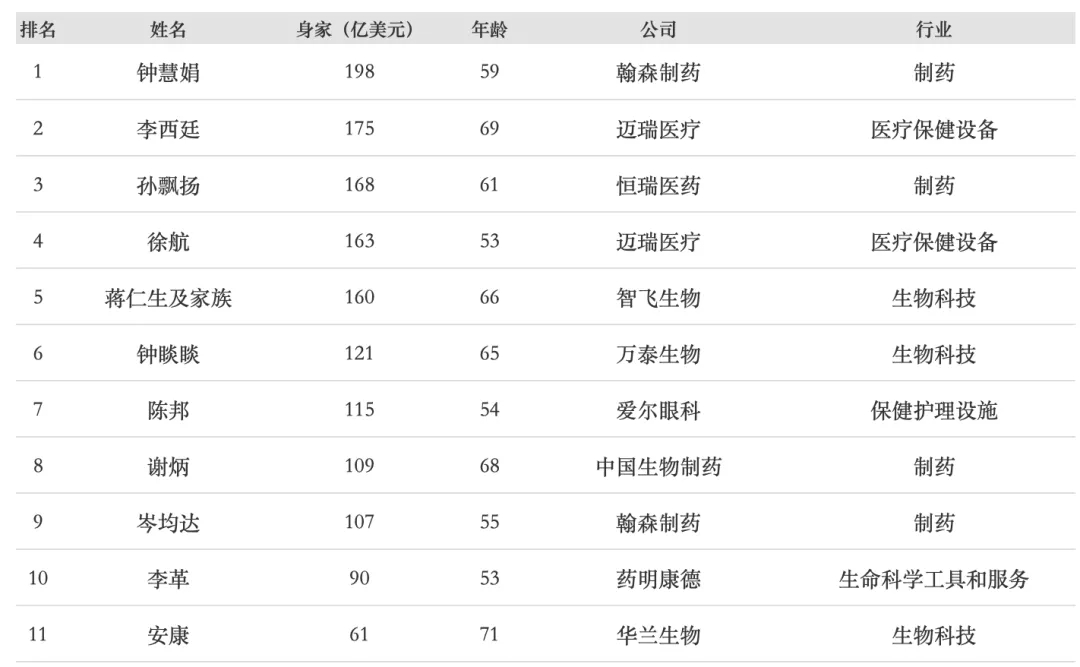 医疗行业新晋富豪榜单
