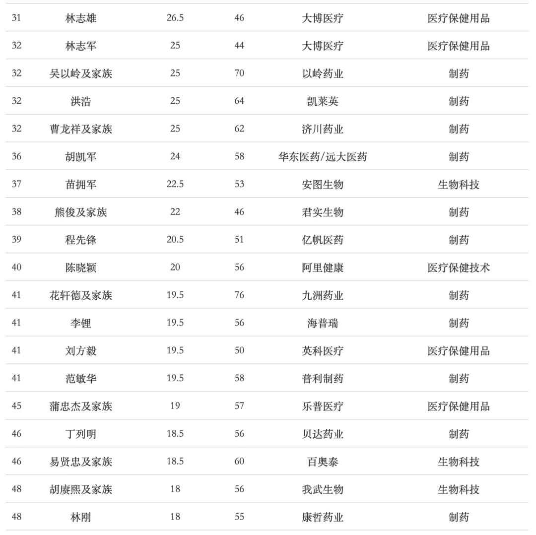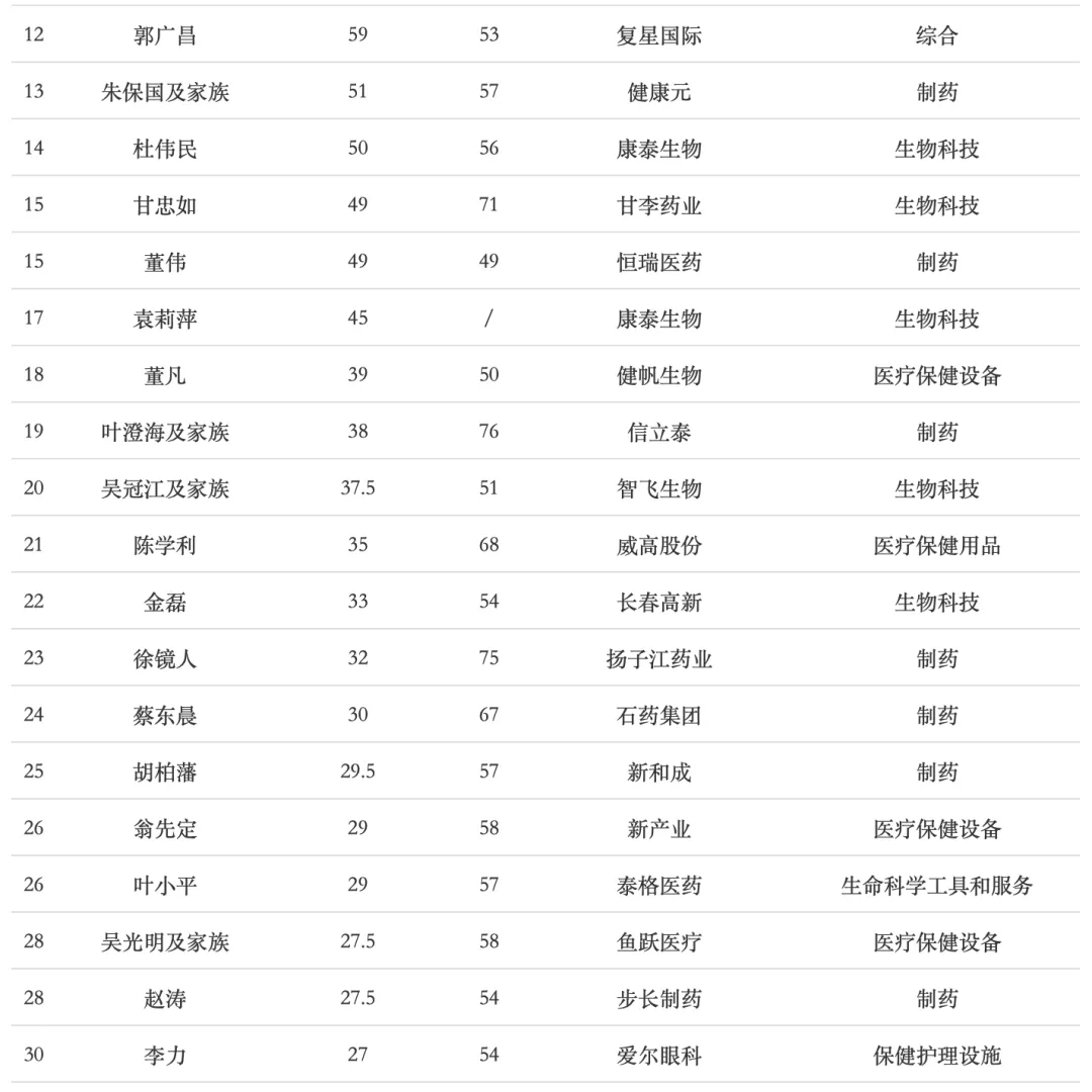 医疗健康富豪50强完整榜单