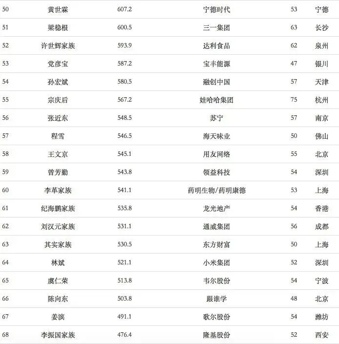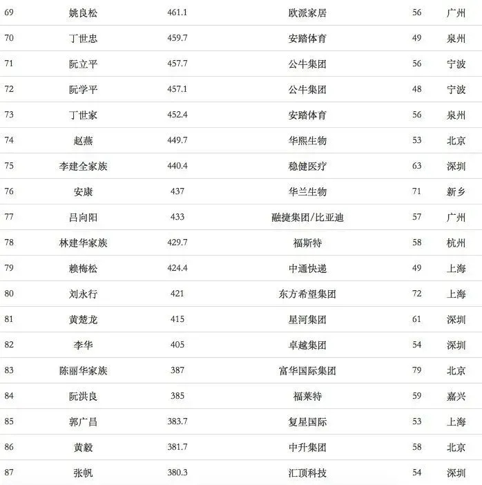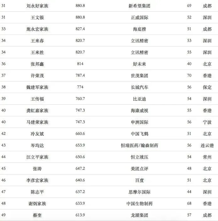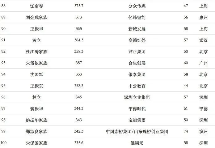 福布斯中国富豪榜TOP100