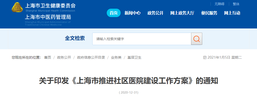 日前,上海市卫健委最新发布了一则《关于印发上海市推进社区医院建设工作方案的通知》(以下简称《通知》)。